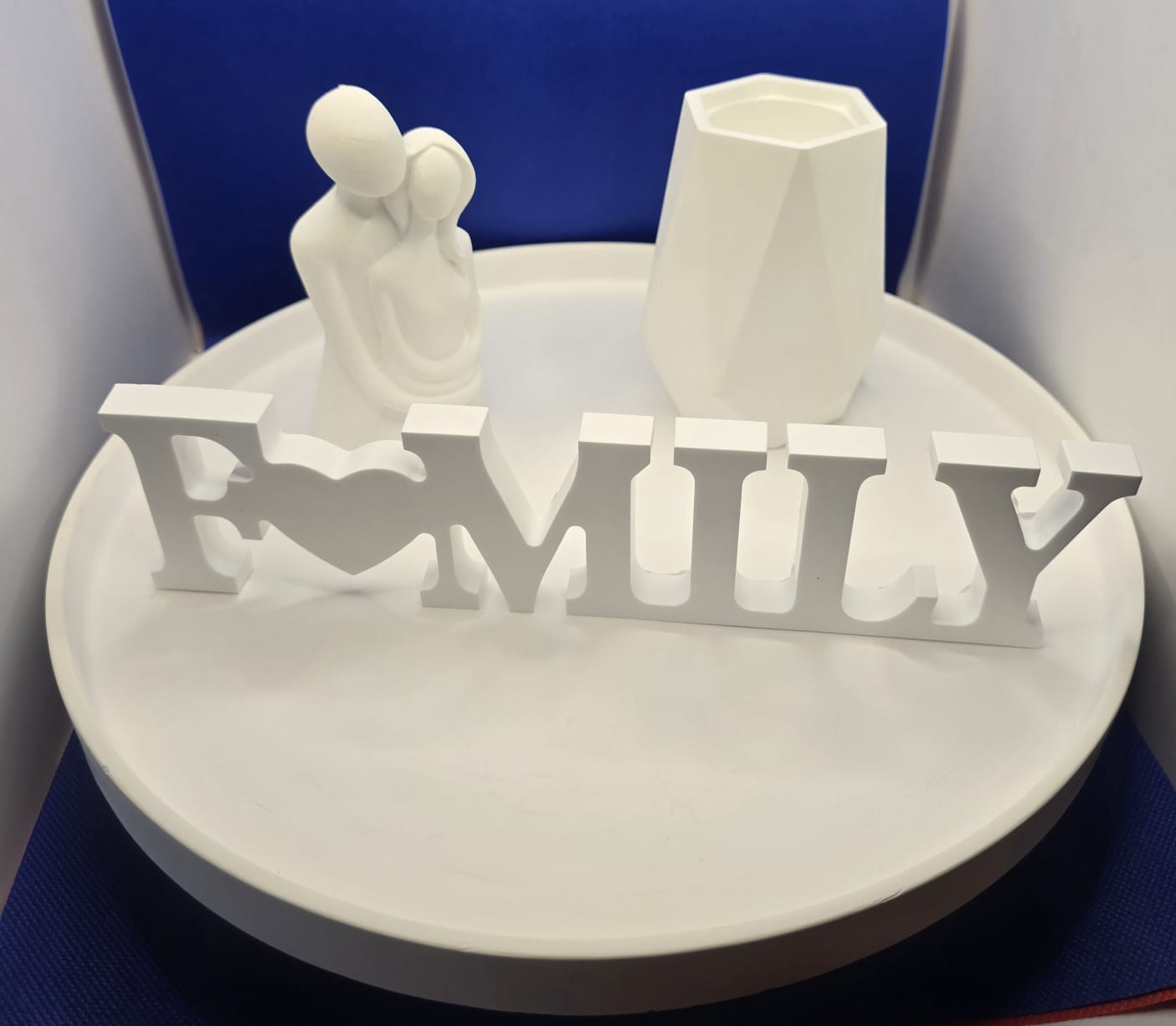 This ceramic decorative set features elegant family figurines paired with a minimalist ceramic vase, creating a harmonious and meaningful home décor accent. The clean lines and neutral color palette make it a versatile piece that complements modern, minimalist, and contemporary interiors.