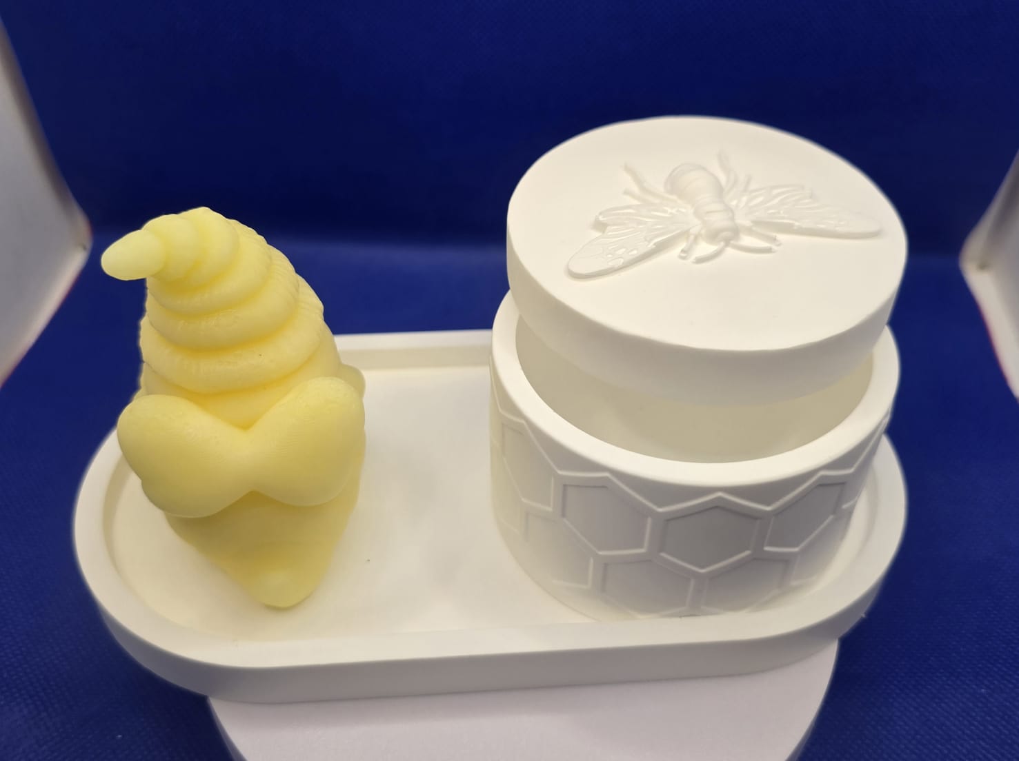 Add a touch of natural charm and elegance to any space with this Decorative Ceramic Set with Bee Candle Made of Natural Wax, featuring a delicate bee- and honeycomb-shaped wax candle. Inspired by nature and the beauty of bees, this set is a thoughtful choice for a truly special gift.