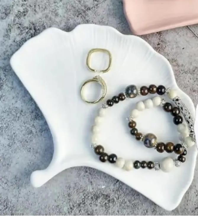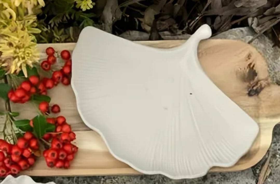 Inspired by the natural beauty of the Ginkgo leaf, this white ceramic decorative tray adds a touch of elegance and calm to any space. Its organic design, with fine lines and delicate texture, makes it a versatile decorative piece, perfect for modern, minimalist, or nature-inspired interiors.
