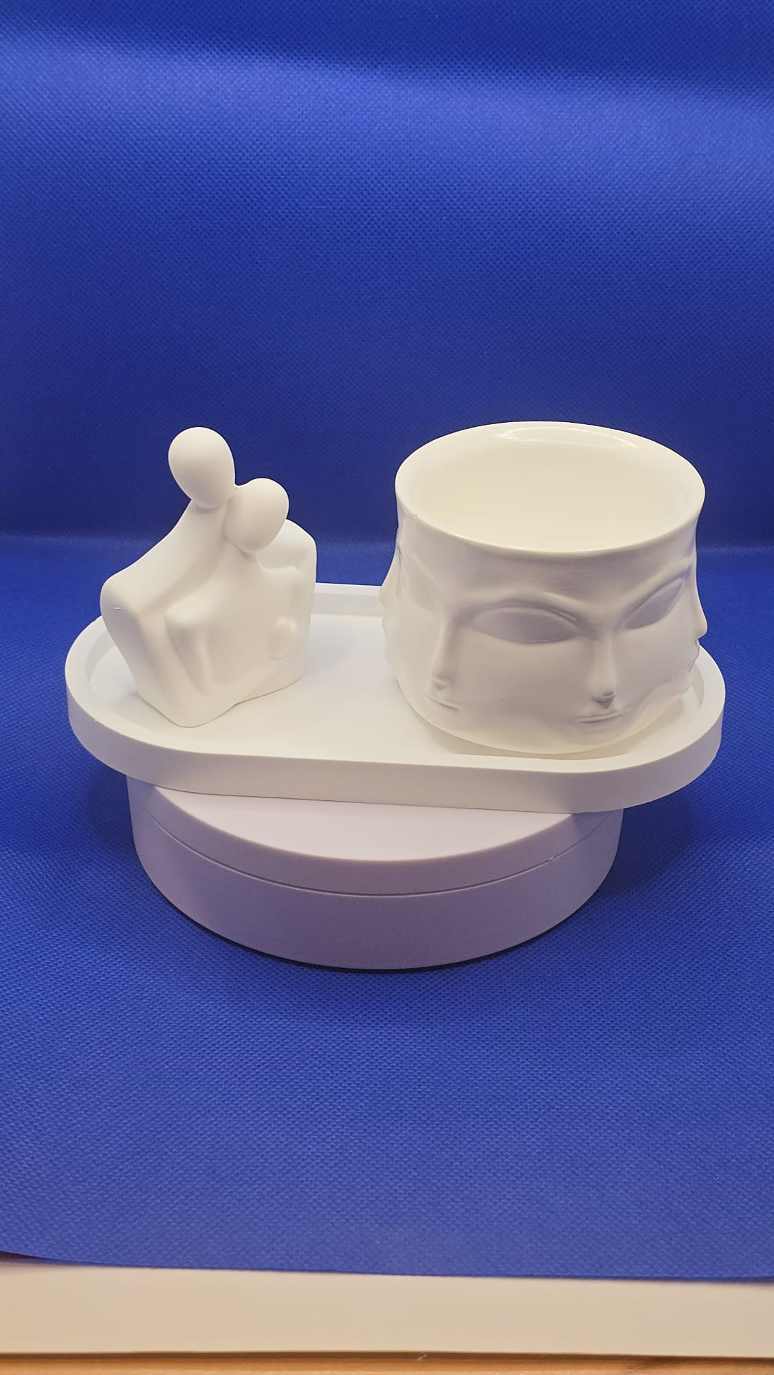 Decorative Set “Fine Connections” – Artistic Ceramic captures the beauty and depth of the bond between two souls through a minimalist and sensitive design. The sculpture depicts a couple embracing, symbolizing love, support, and genuine connection, complemented by a multi-faceted decorative vase that adds a touch of mystery and elegance.