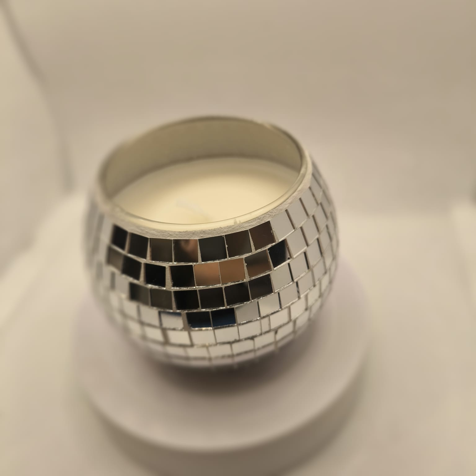Materials and Quality: Crafted from high-quality, non-toxic wax, this candle is designed to burn evenly and cleanly. The carefully selected wick ensures a stable flame, reducing the risk of soot or smoke. The mirror tiles are meticulously placed to achieve a stunning reflective effect, ensuring a dazzling appearance that lasts.