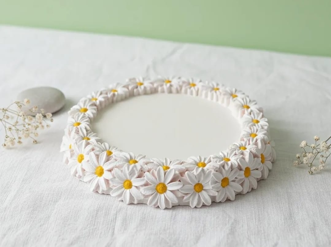 Add a touch of freshness and elegance to your décor with the „Floral Grace” plate. This small ceramic plate, featuring a delicate daisy design, brings a spring-like and cheerful atmosphere to any room. With a diameter of 8 cm, it’s perfect for use as décor on tables, shelves, or desks. The fine details of the daisy flowers and bright colors make it a wonderful decorative piece, ideal for anyone who loves floral and natural decorations.