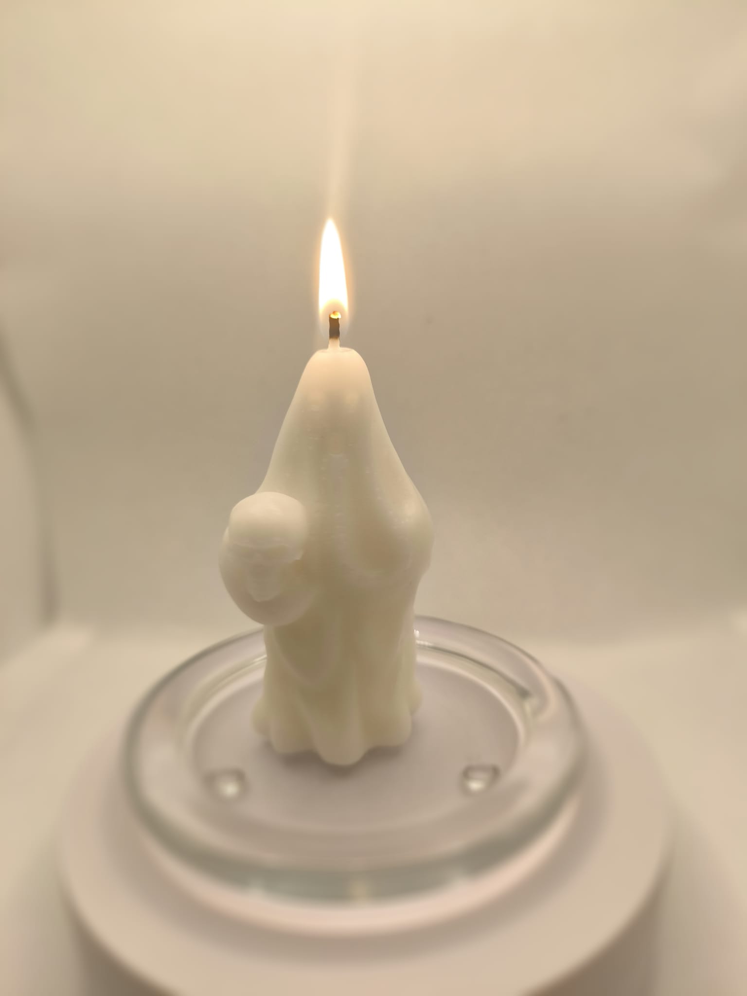 Design: A ghostly figure with a resting skull head in a smooth, ivory-white finish
