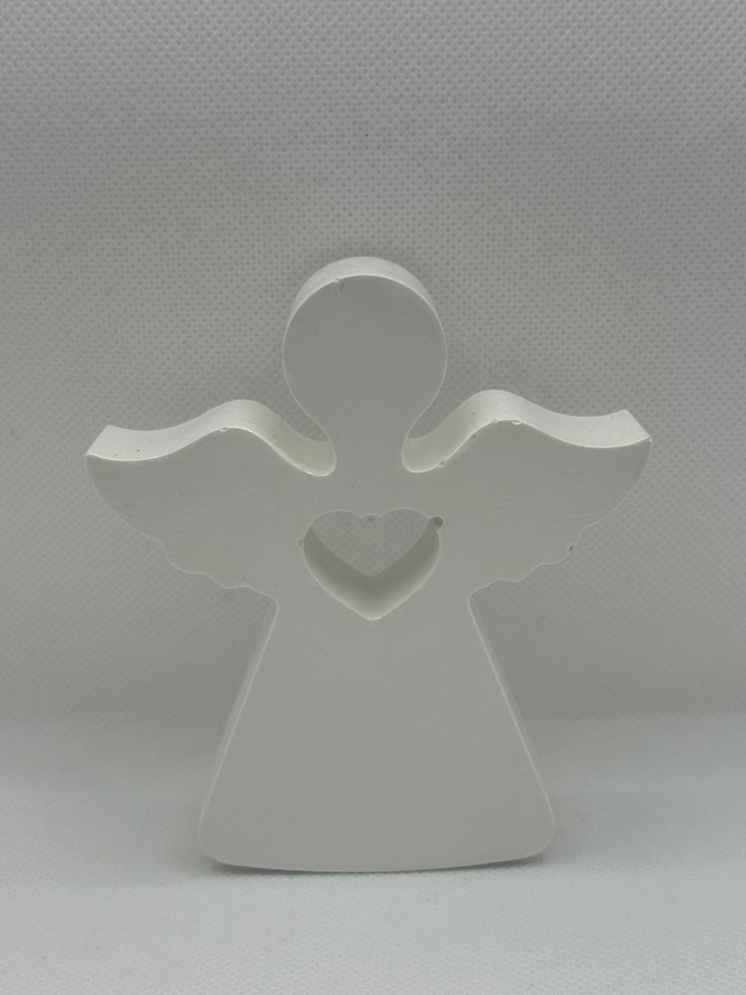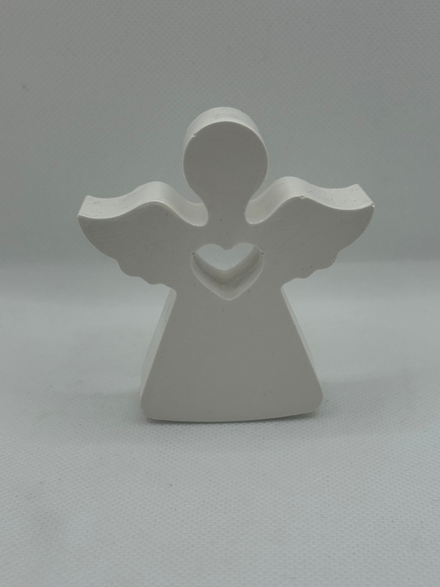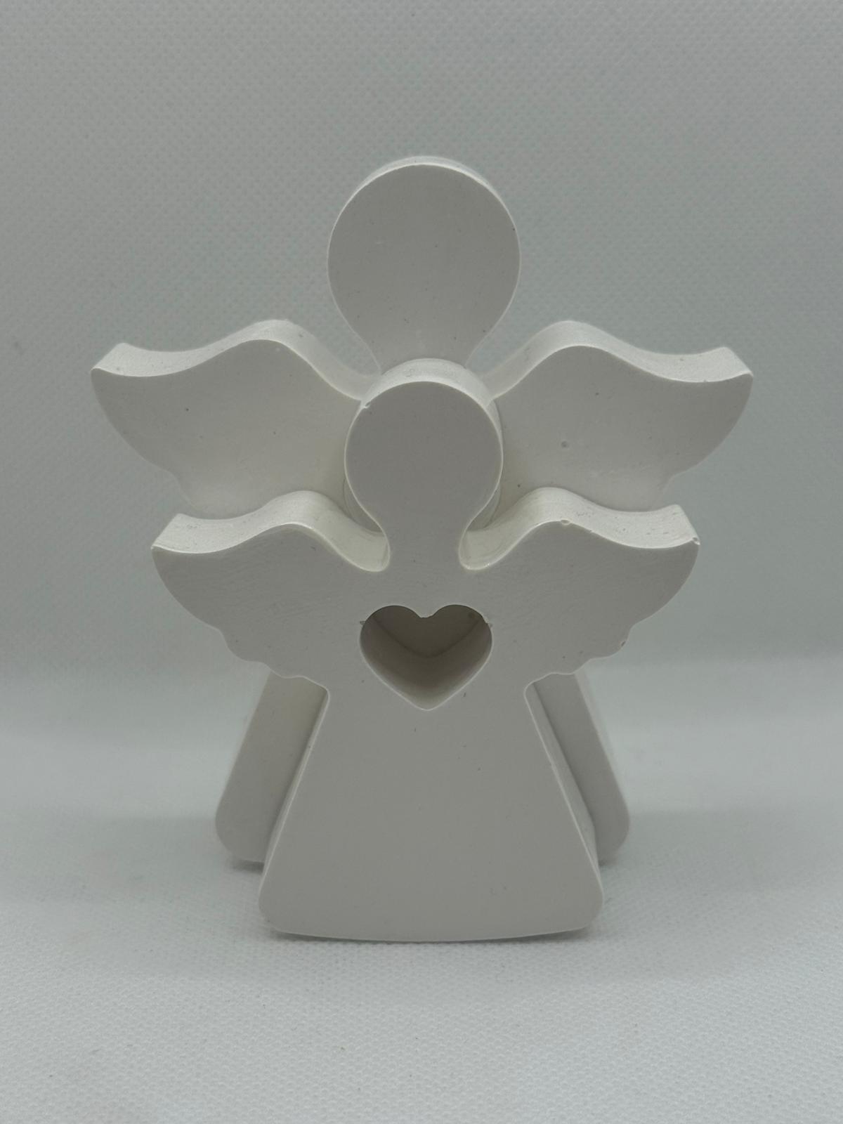 Designed with a minimalist touch, the angels feature a heart-shaped cutout symbolizing love and protection — perfect for creating a serene, comforting atmosphere. Whether displayed on a shelf, mantel, or as part of your holiday decorations, these angels add warmth and grace to any space.