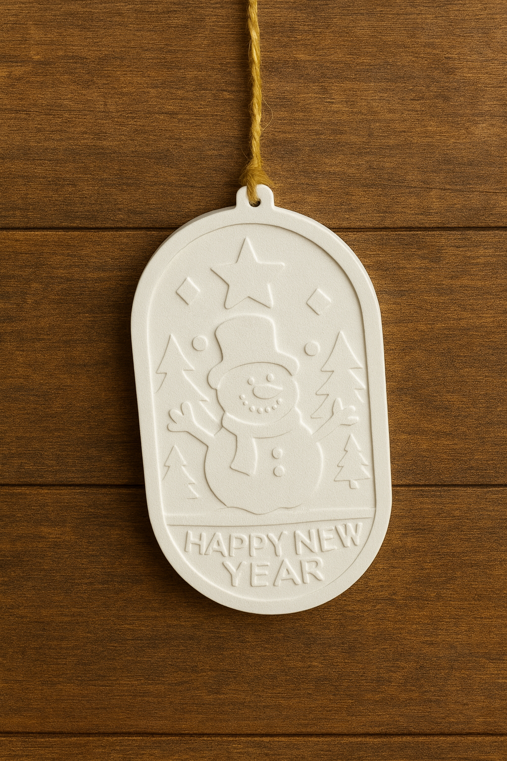 Add a festive and charming touch to your winter holiday décor with this elegant hanging ceramic decoration. Featuring a cheerful snowman and the “Happy New Year” message, this piece brings warmth and seasonal spirit to your home.