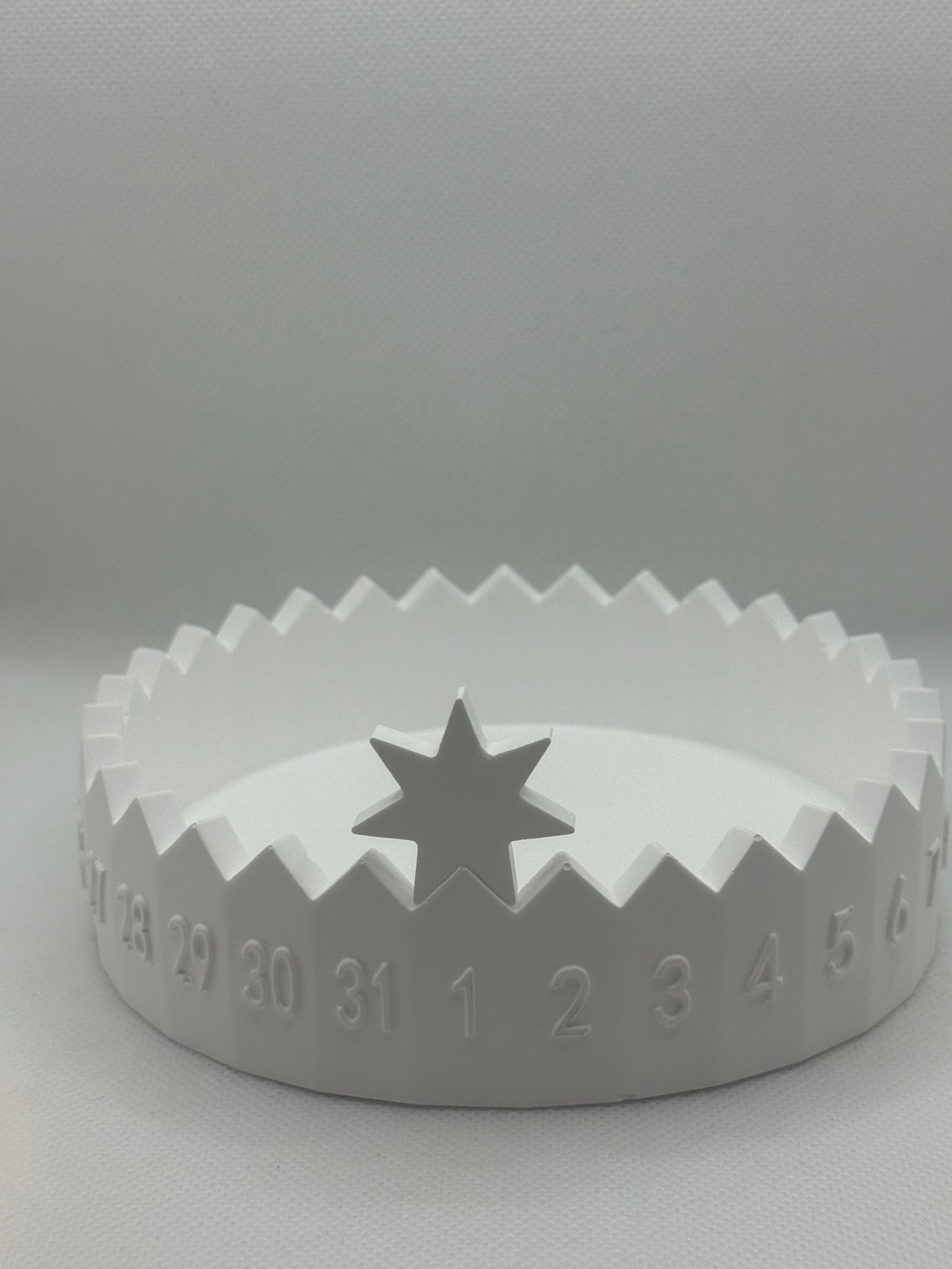 The Rotating Monthly Calendar is a minimalist and elegant desk accessory crafted from high-quality ceramic and finished with a smooth lacquered coating for a refined, glossy appearance. Designed in the shape of a circular crown, it features embossed numbers from 1 to 31, representing each day of the month.