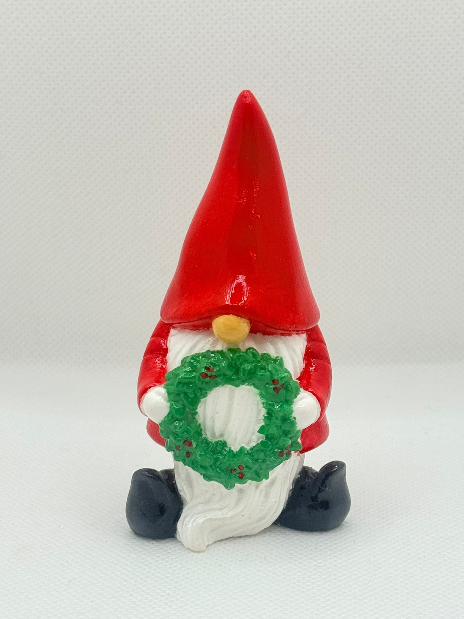 Bring a touch of holiday magic to your home with this charming set of 3 Christmas gnomes, each holding a festive green wreath. These adorable figurines are crafted from high-quality ceramic and finished with a beautiful glossy glaze that adds a touch of shine and elegance to any Christmas display.