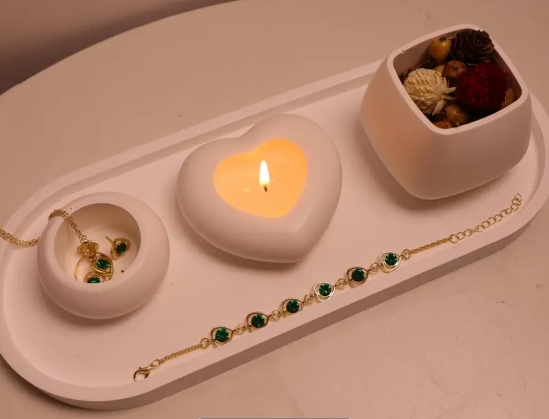 Bring a touch of elegance and emotion into your home with the Touch of Love Set, crafted from high-quality glazed ceramic. Each piece beautifully blends modern design with symbols of affection — the heart, the circle, and the square — creating a harmonious balance between style and warmth.