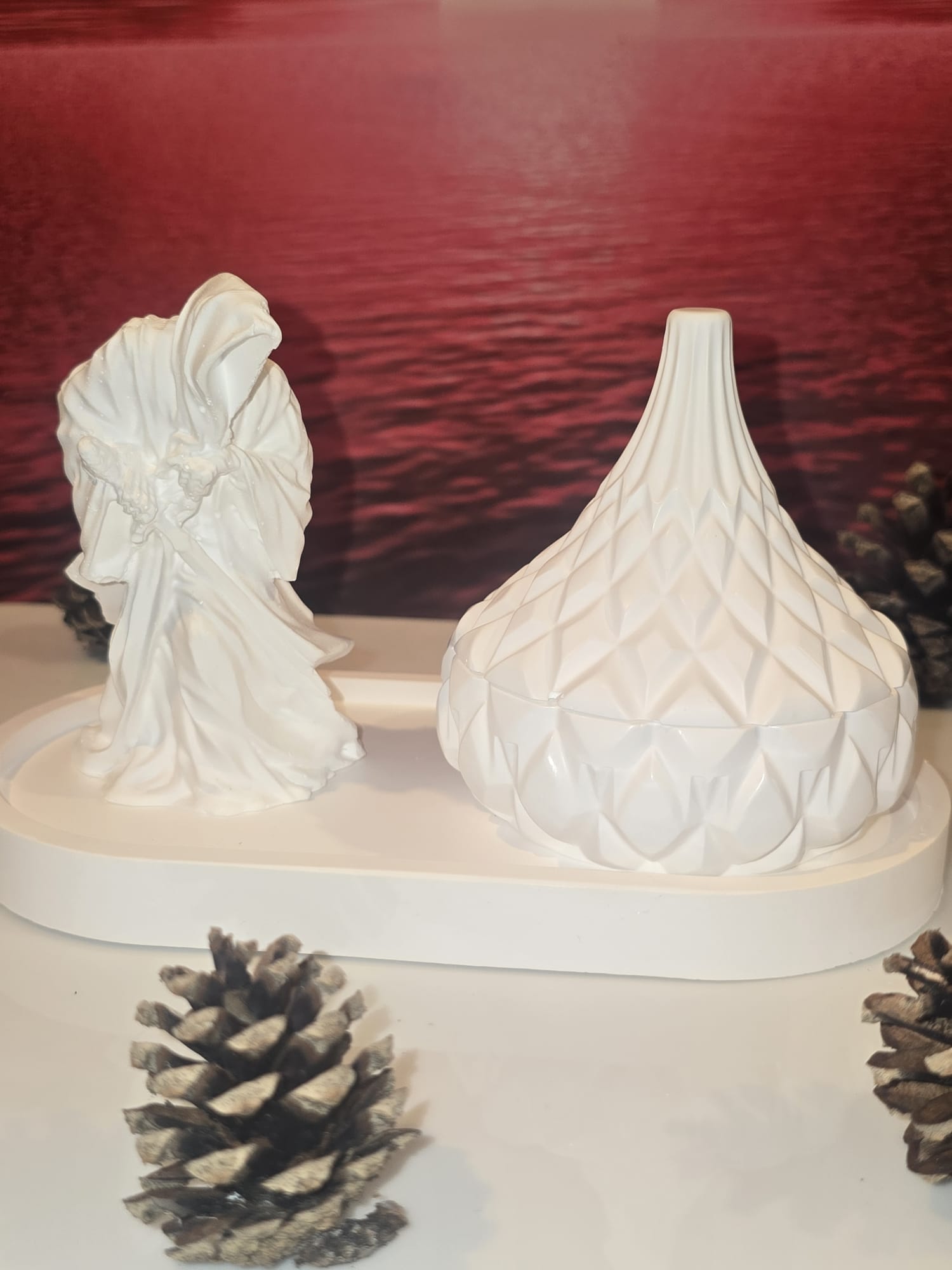 Made entirely by hand from matte white ceramic, this set adds a bold, contemplative focal point to any shelf, altar, or side table. Ideal for gothic, mystical, or minimalist interiors.