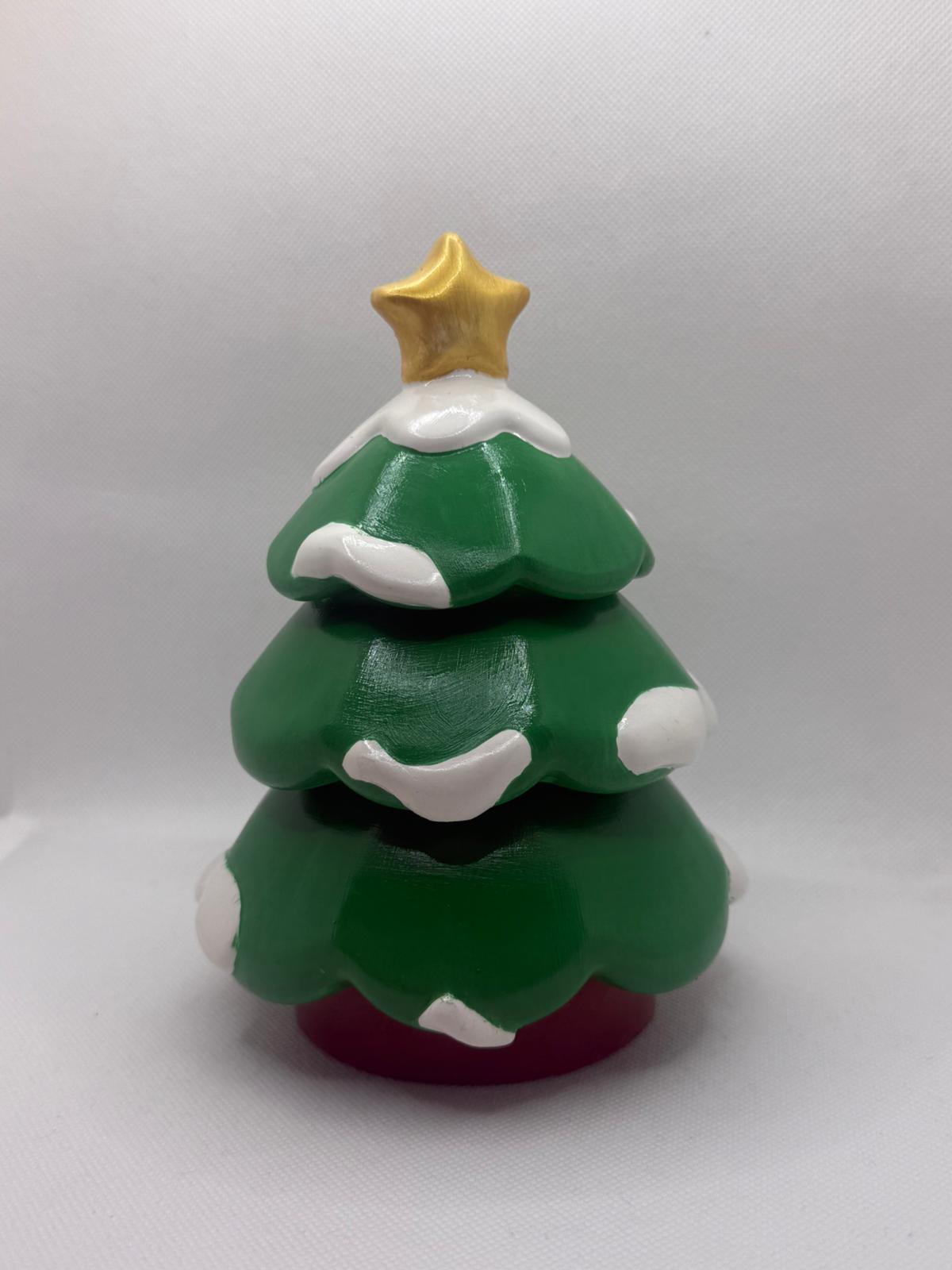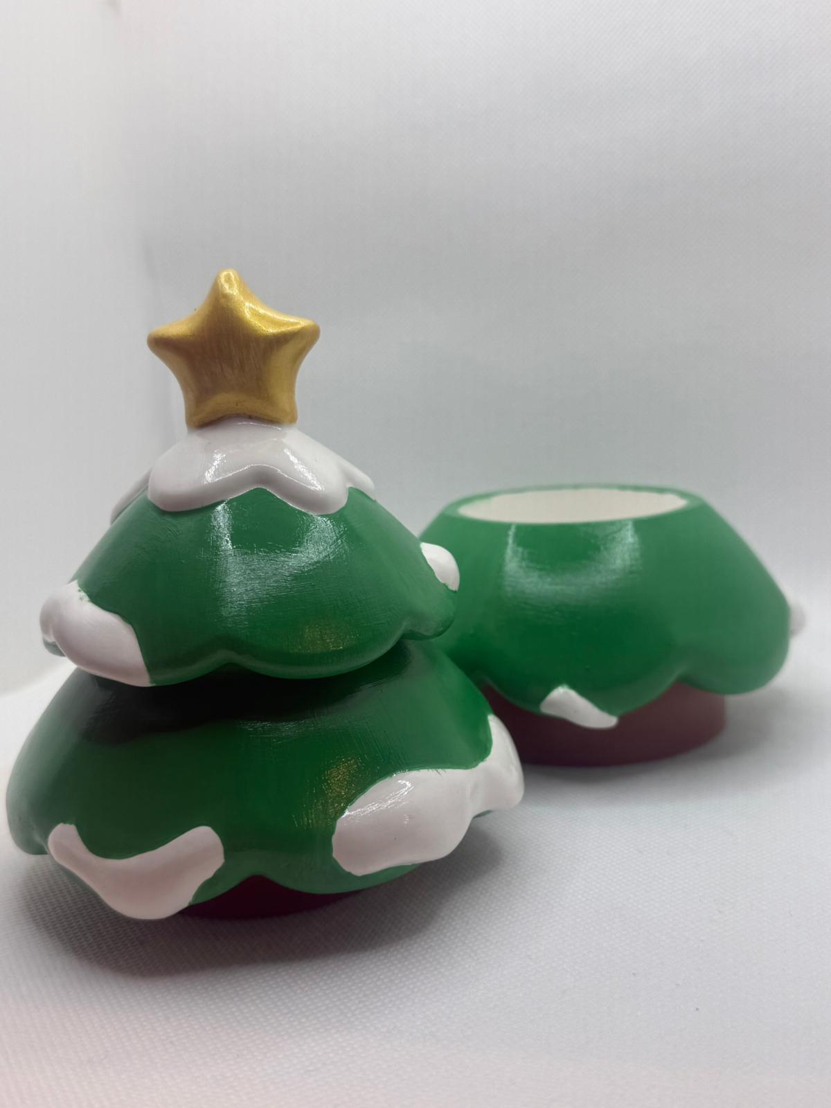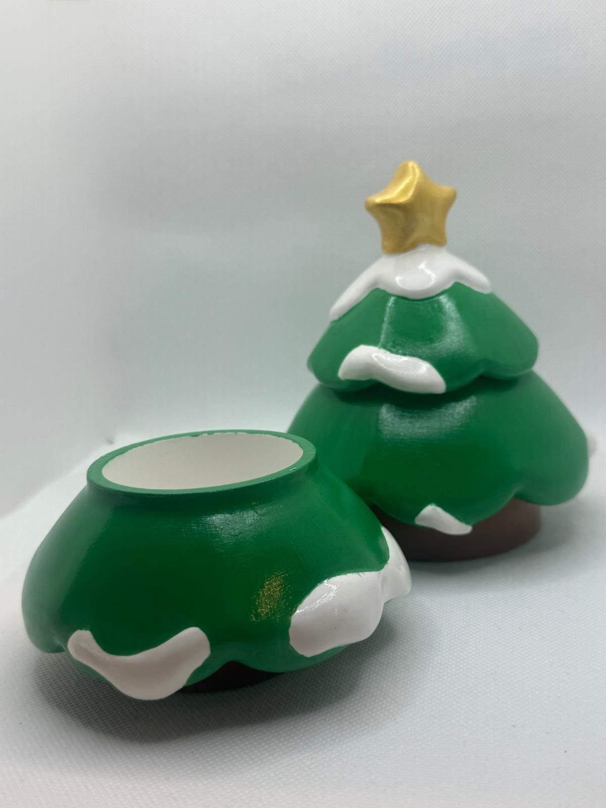 Bring festive charm into your home with the “Snowy Tree” — a beautiful 3-piece handmade ceramic decoration, carefully painted and finished with a glossy protective lacquer. Each piece comes together to form an adorable Christmas tree, featuring a smooth green glaze, snowy white accents, and a golden star on top.